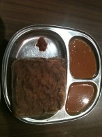 The murtabak (roti) was a beautiful and plump golden square of flaky, thin yet firm pastry filled with a spicy blend (almost omelette like) of minced lamb, egg, onion and cabbage. It was served on a stainless steel platter with two curry dips and a dollop of sambal (chilli paste). The pastry was light and fluffy and perfect but I expected the filling to be more drier and ‘meatier’ and not to be typical of an omelette.