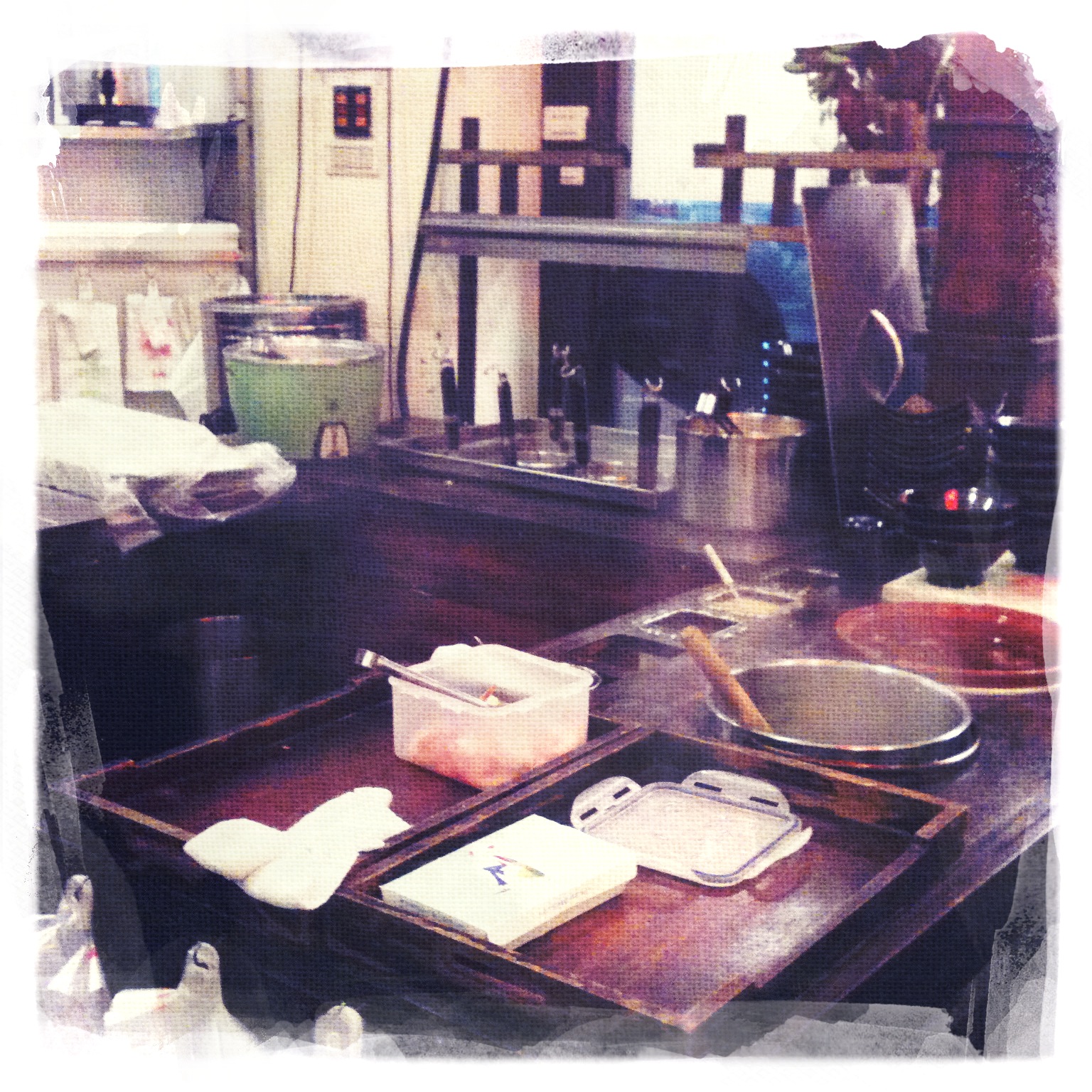 short walk away. It is in an area full of small Taiwanese restaurants specialising in anything from beef noodles and pig’s ears to pork rice but Hong’s stands out as a swankier spot serving delicacies from Taiwan’s south. It is a small restaurant (seating just over 30) with a long communal table in the centre which is next to a traditional cooking area where a chef is at work simmering the pork mince for the tan tsai mian. It does a good take-away trade and is also popular for its Taiwanese bubble teas.