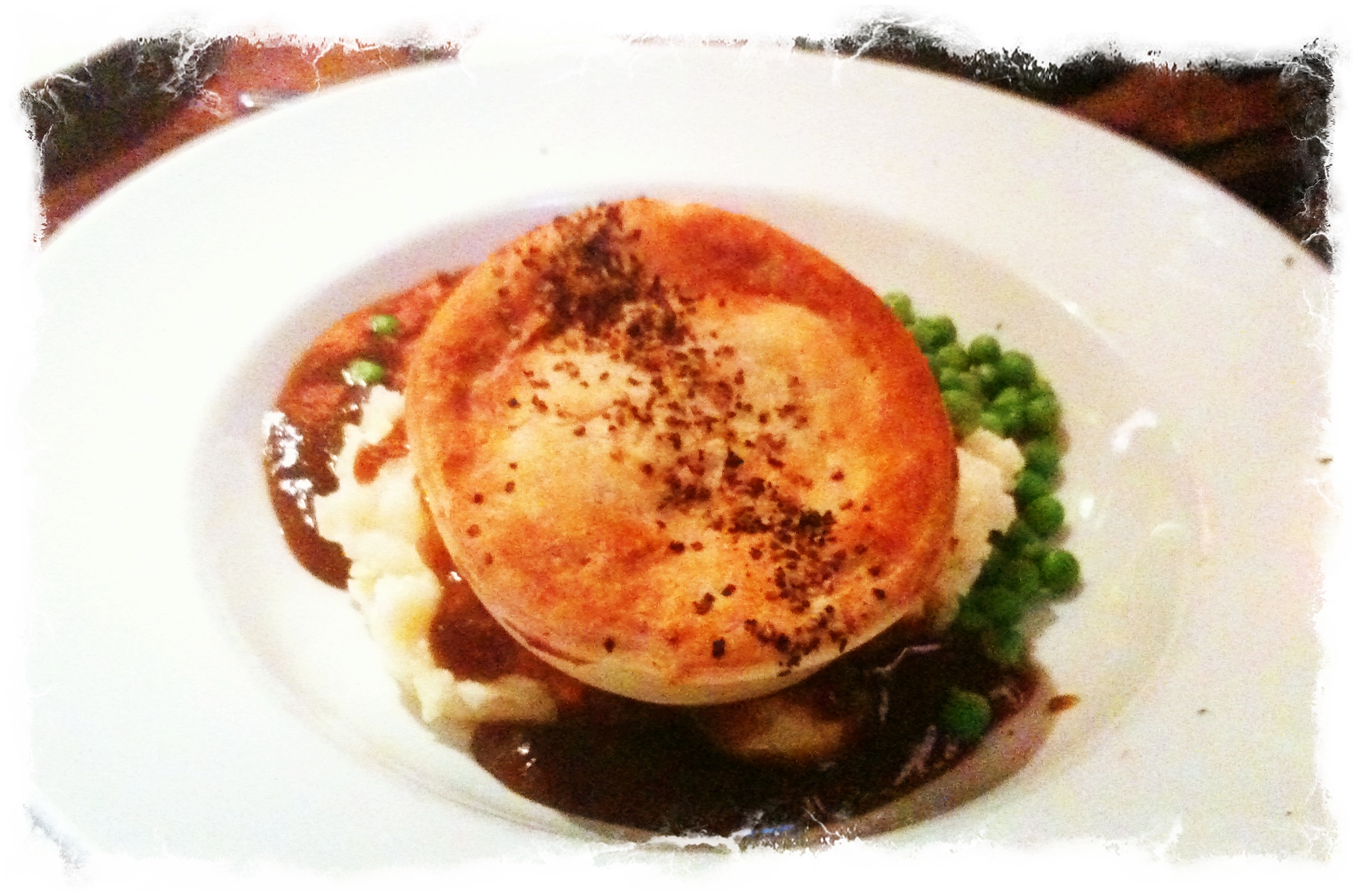 The serving of mash, peas and gravy gives it that air of English pub tradition but $10 for a ready-made pie seems just bit out of kilter when you can go to Harry’s Cafe de Wheels and get a good pie fix.