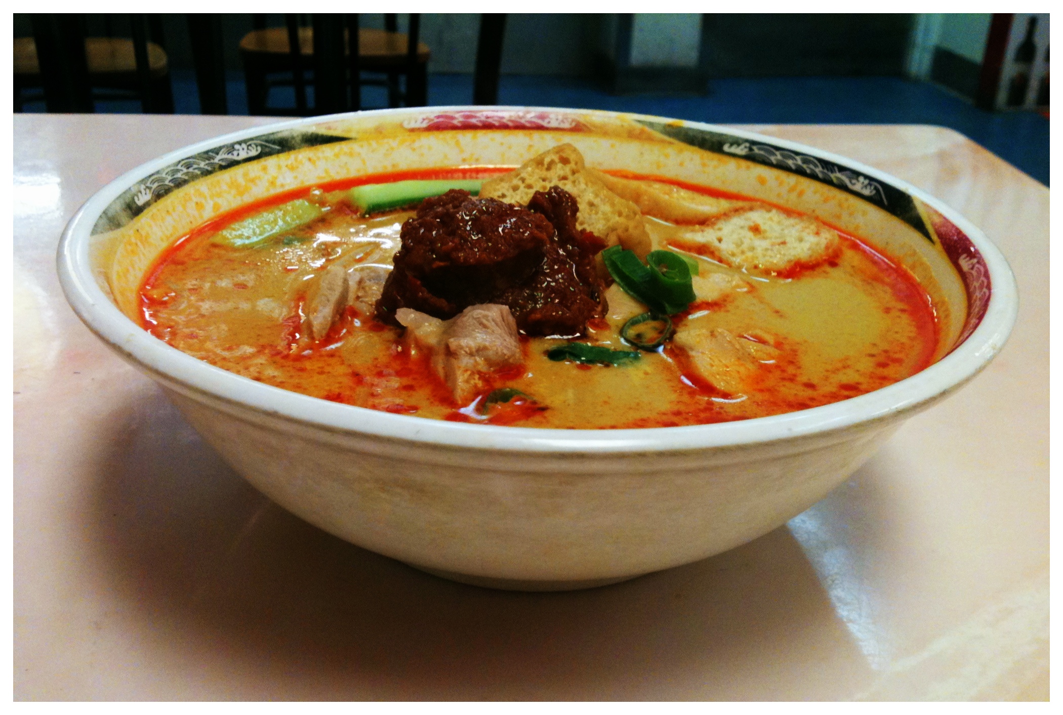 Dad would take me to places like Hawker’s Corner and Asian Gourmet in Adelaide and subject me to this fiery yet creamy liquid concoction containing stuff like fried tofu, bean sprouts, chicken and glowing yellow Hokkien noodles (the typical Adelaide-style laksa). These weren’t “backwards coming forwards” laksa either because as Adelaide had a sister-city relationship with Penang, Malaysia, everyone embraced Malaysian food and demanded it to be true (and Don Dunstan would turn in his grave if it wasn’t). In later years I learnt very quickly that this was also a miracle food – it could not only cure hunger but also a hangover.