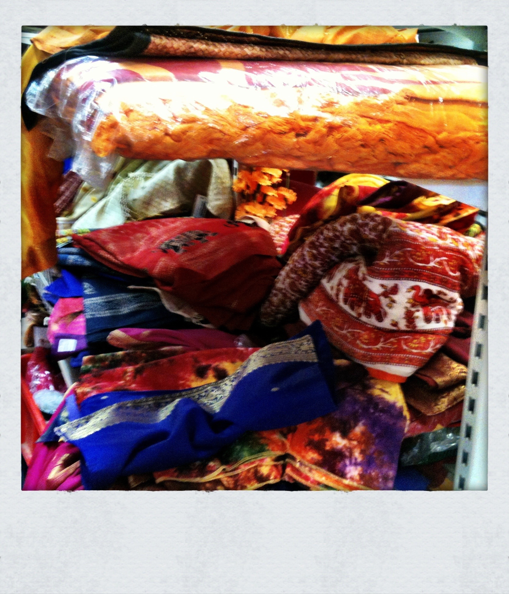 Near the checkout area hanging from the walls and ceilings and on racks are colourful sari and fabrics; bindies, galands, beads and bracelets (and even Fijian shirts!)