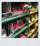 The last aisle features Indian read-to-eat packet meals (mainly vegetarian – like aloo mutter and dal), bags of lentils and cooking utensils. You could spend a good half an hour just checking out the utensils. There are tiffin carriers; stainless steel tahli; pots and pans; coconut scrappers and chapatti rollers; cooking vessels and gleaming copper kadi.