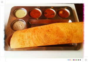 The Deity thought it was the best dosa ever (and The Diety is an expert on dosa). I had to agree – it wasn’t oily, there wasn’t too much potato masala in it to be overwhelming, and the five accompaniments were perfect matches. It was a star.