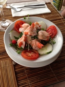 Baroness finds it hard to resist lobster. Nadina had a special – local 500g Yasawa Reef lobster with a bush lemon and garlic sauce (FJD$53). It was a no-brainer. What she got was superb (especially for the price). Again the dish was served with the same vegetable sides I had but Baroness wisely chose mashed potato instead of dalo.