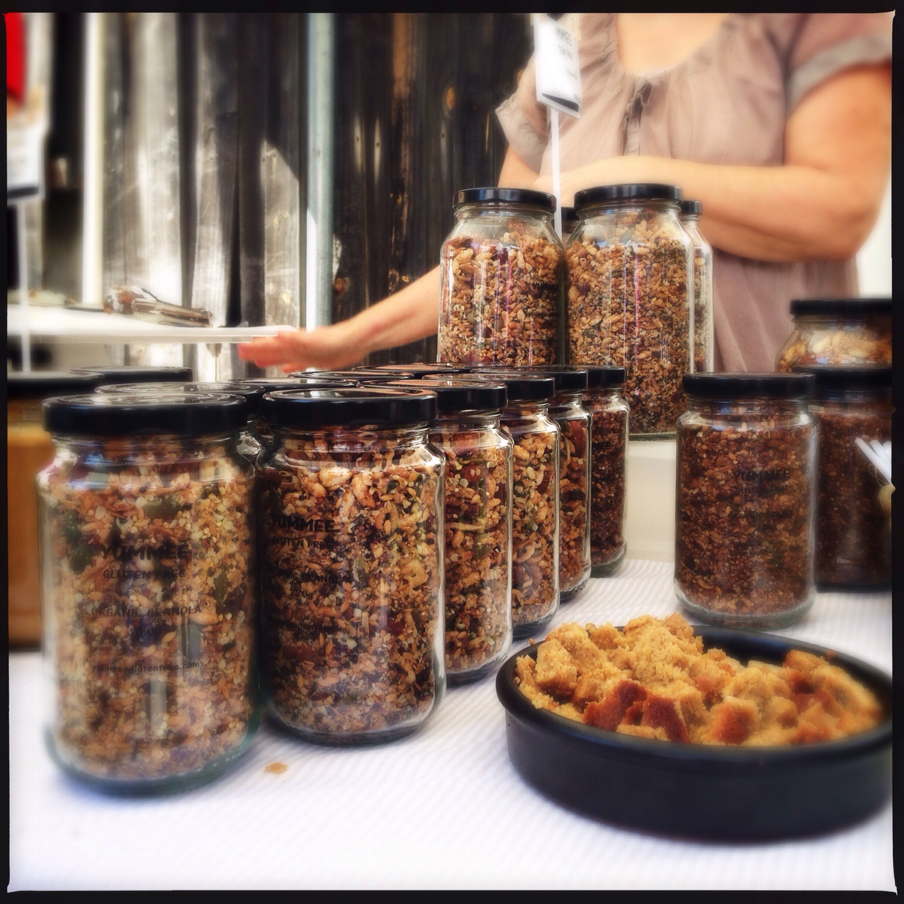REG and Little Nipper wanted to take us to some of their market discoveries (I think REG couldn’t wait to try the samples as almost all stallholders had an offering to entice a purchase), so the first stop was “Yummee” operated by a family that made their own organic granola. The granola was good, especially highlighted when layered with the fruity compote that they also sold. The family also makes its own peanut spread (which would be excellent on top of some steamed veges Indonesian gado-gado style), and an almond paste.