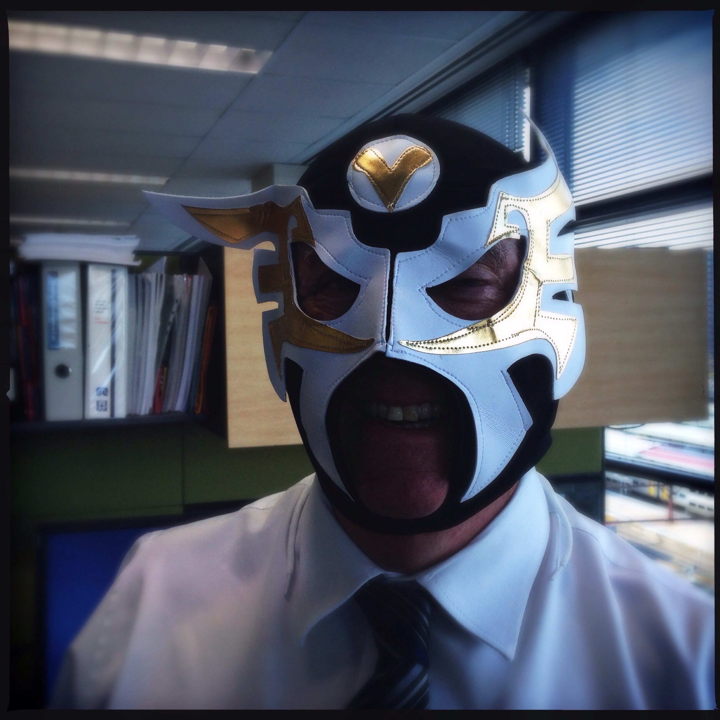Heracles wanted a mask. He completed the challenge in 2014 and wanted another (possibly so as not to be identified by Police attending a Bulldogs match as there was one in the team’s blue and white colours). Our colleague – the Silver Fox – miffed about what all the fuss was about a Mexican wrestlers mask and big burritos, tagged along. Both Heracles and I were concerned about Fox’s presence as he was the most senior in age to us and we both believed that the defibrillator that was on our floor was put in especially to cater for worldly wise colleagues such as Silver Fox.